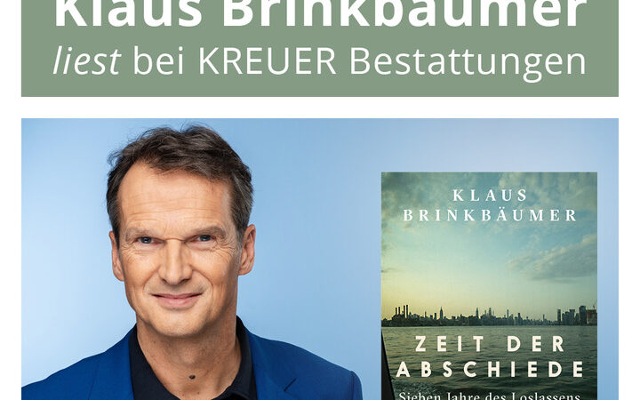 Am Mittwoch, den 26.11.25 liest der Autor, Journalist und Moderator Klaus Brinkbäumer bei uns in der Trauerhalle aus seinem Buch „Zeit der Abschiede – Sieben Jahre des Loslassen und Wiederfindens“….