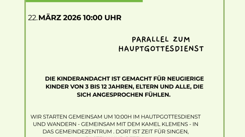 Am kommenden Sonntag findet parallel zum Gemeindegottesdienst in der Reformationskirche ein Kindergottesdienst statt. Gemeinsam mit den „Großen“ starten wir in der Kirche. Mit dem Kamel Klemens geht es dann in…